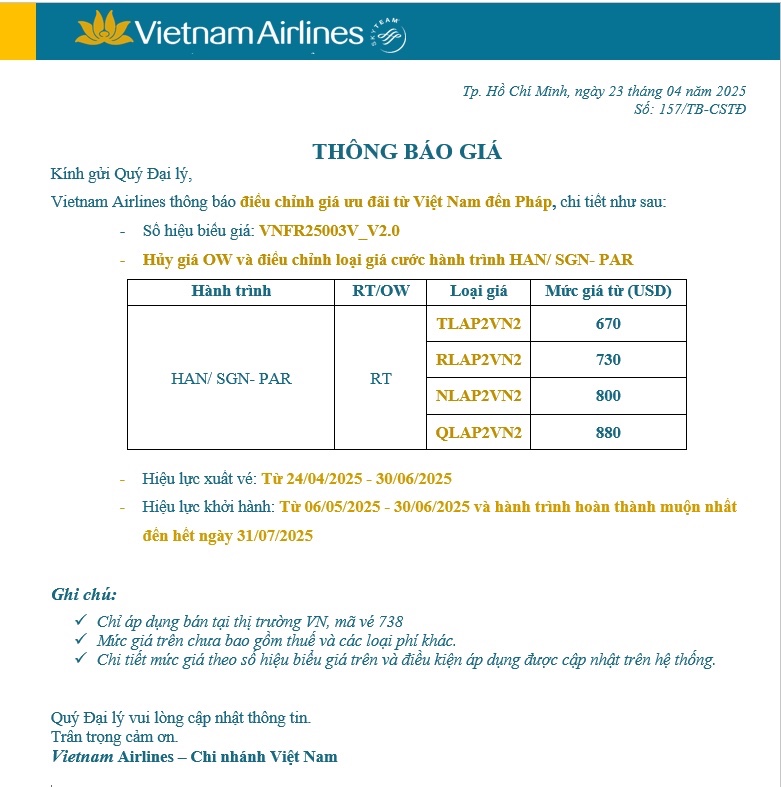 - Giá ưu đãi từ Việt Nam đến Pháp